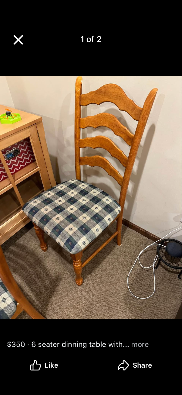 A 6 seater dinning table with chairs . The table converts to a 4 seater . Oak finish